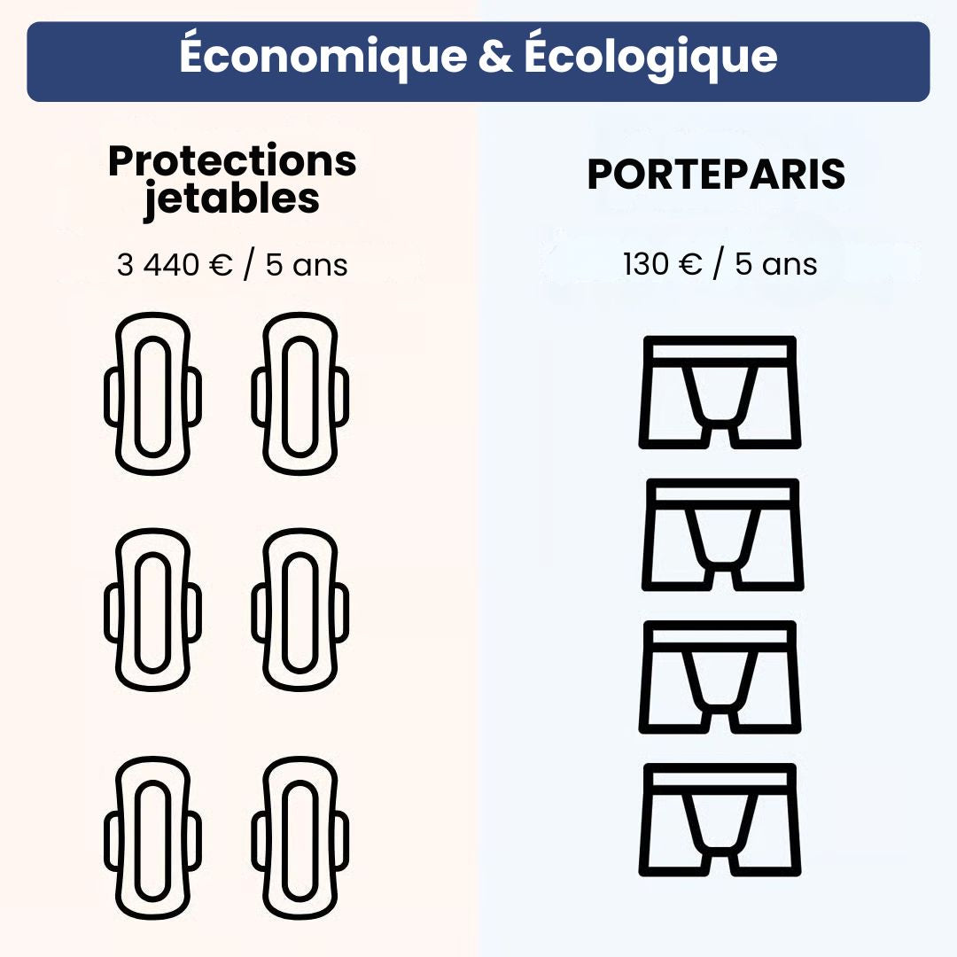 💰 Économisez plus de 3 300 € sur 5 ans par rapport aux protections jetables, tout en profitant d’une protection supérieure et d’une dignité préservée.