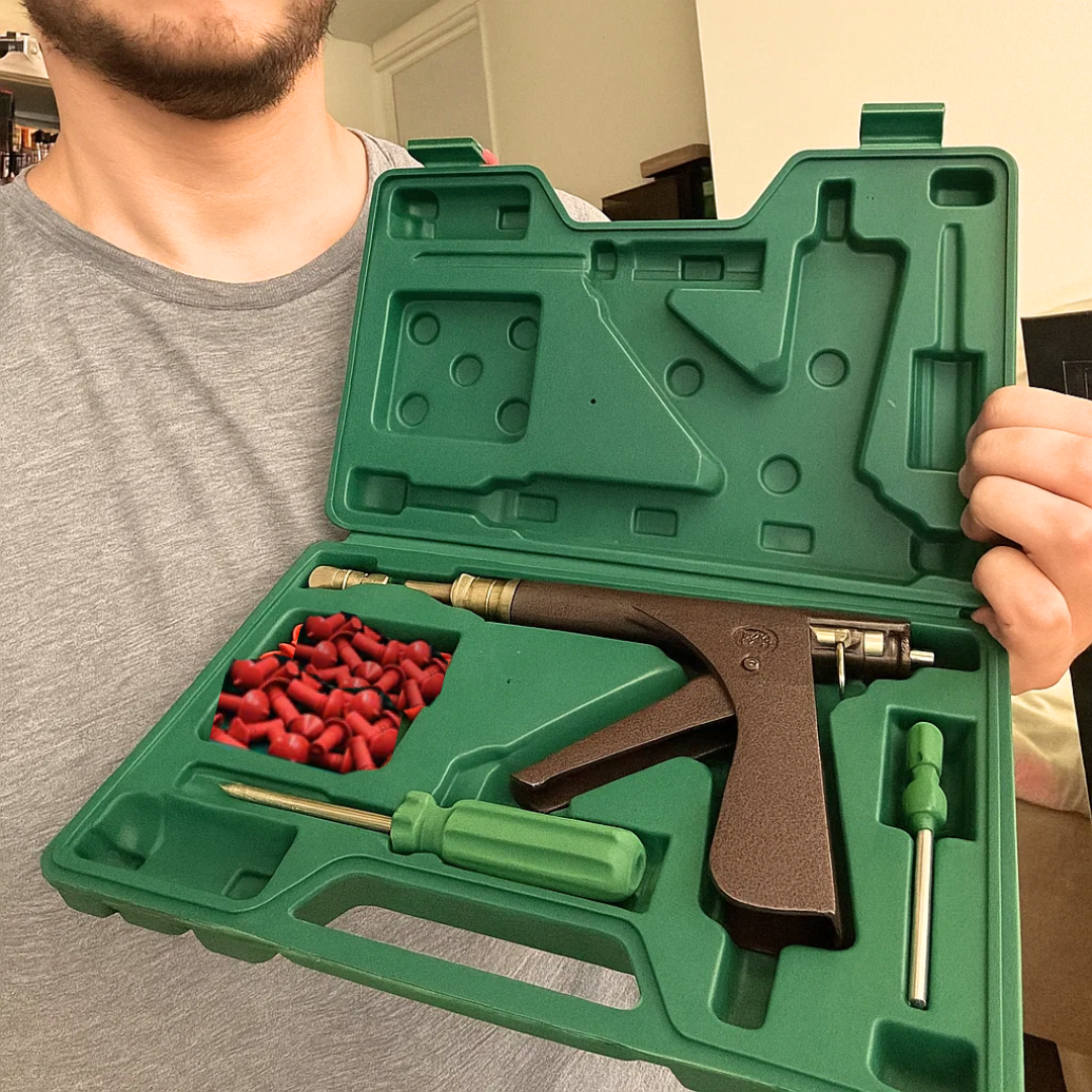 Le Kit FB10 est conçu pour être simple à utiliser, même sans expérience préalable. Pas besoin de force physique ou de compétences techniques : son système à gâchette permet une insertion facile du bouchon champignon en moins de 60 secondes. Il est parfait pour les situations d’urgence, même pour les conducteurs novices.