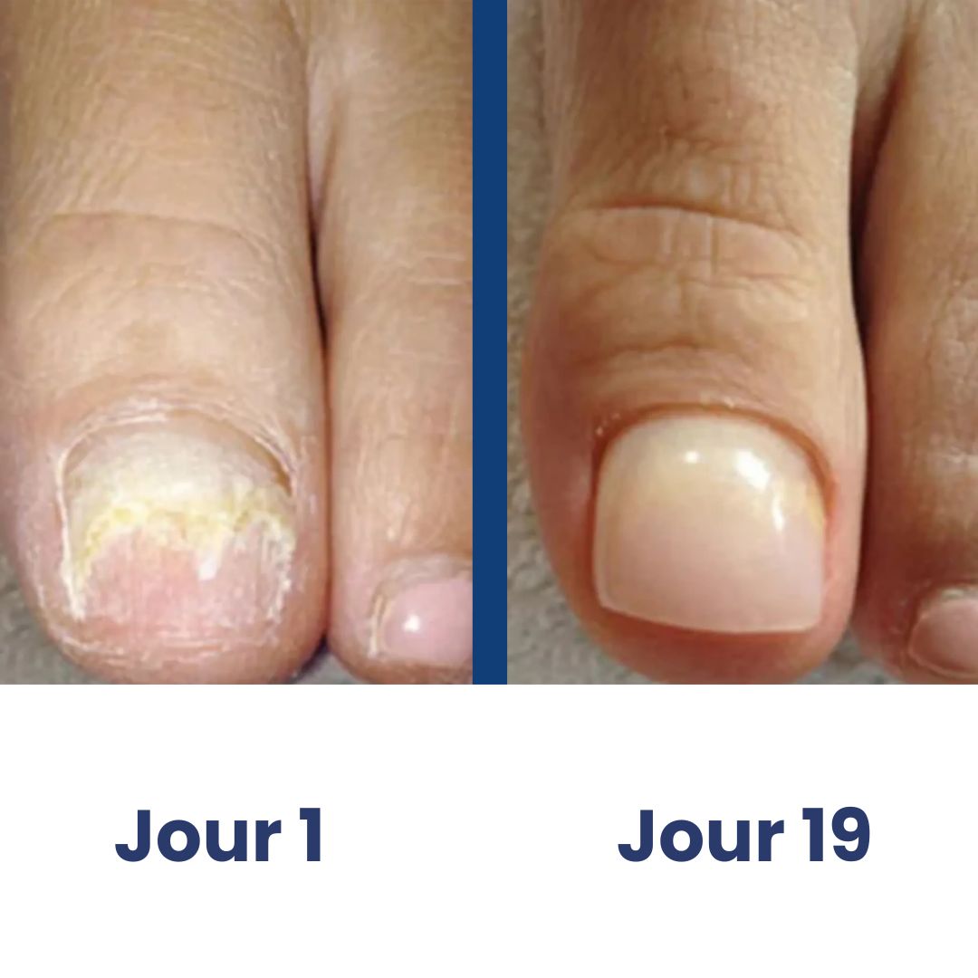 Des améliorations visibles apparaissent généralement après 4 à 6 semaines, tandis qu’une régénération complète de l’ongle prend environ 3 à 4 mois, selon la gravité de la mycose.