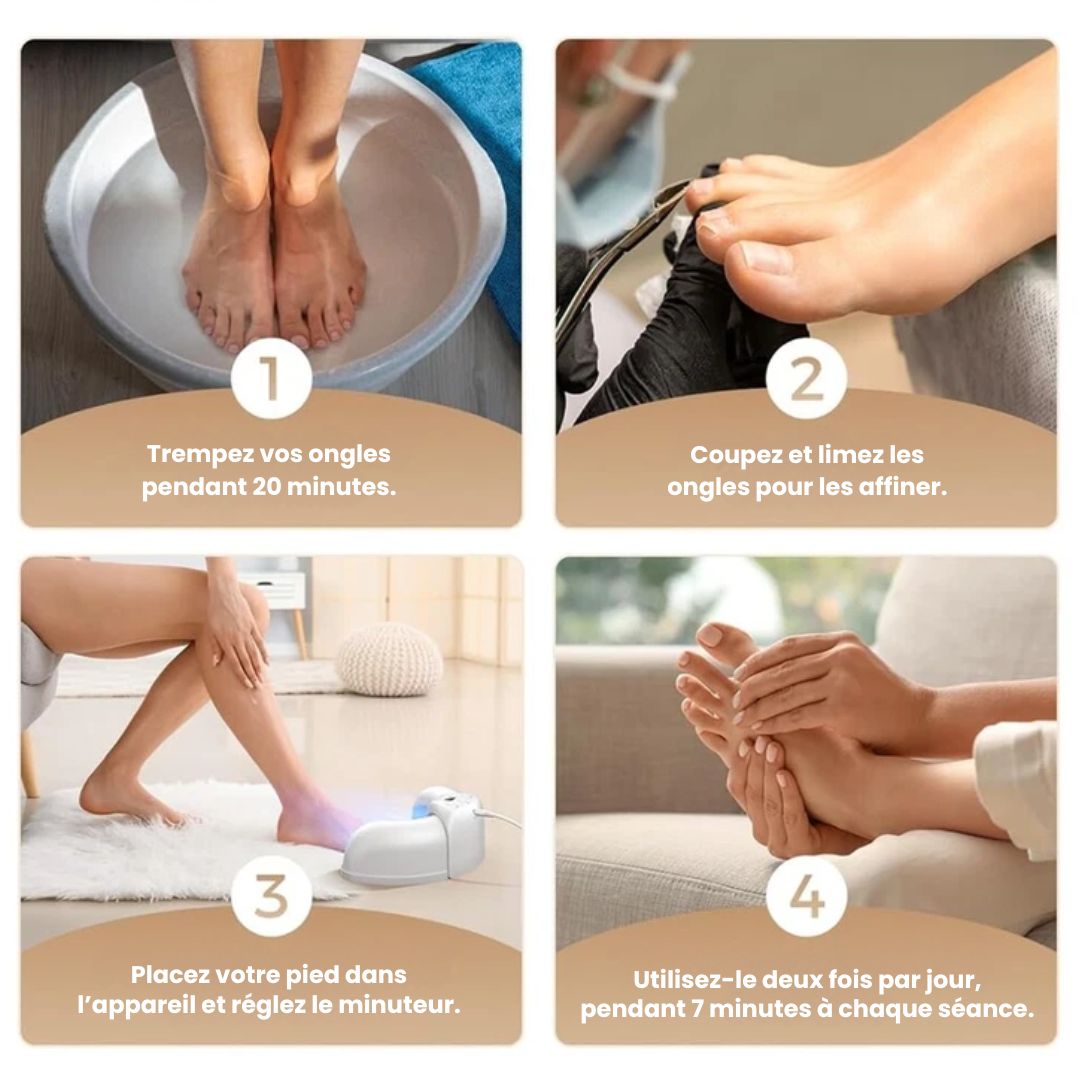 La lumière pénètre jusqu’à la racine du champignon pour des résultats visibles en quelques semaines — sans effets secondaires ni médicaments.