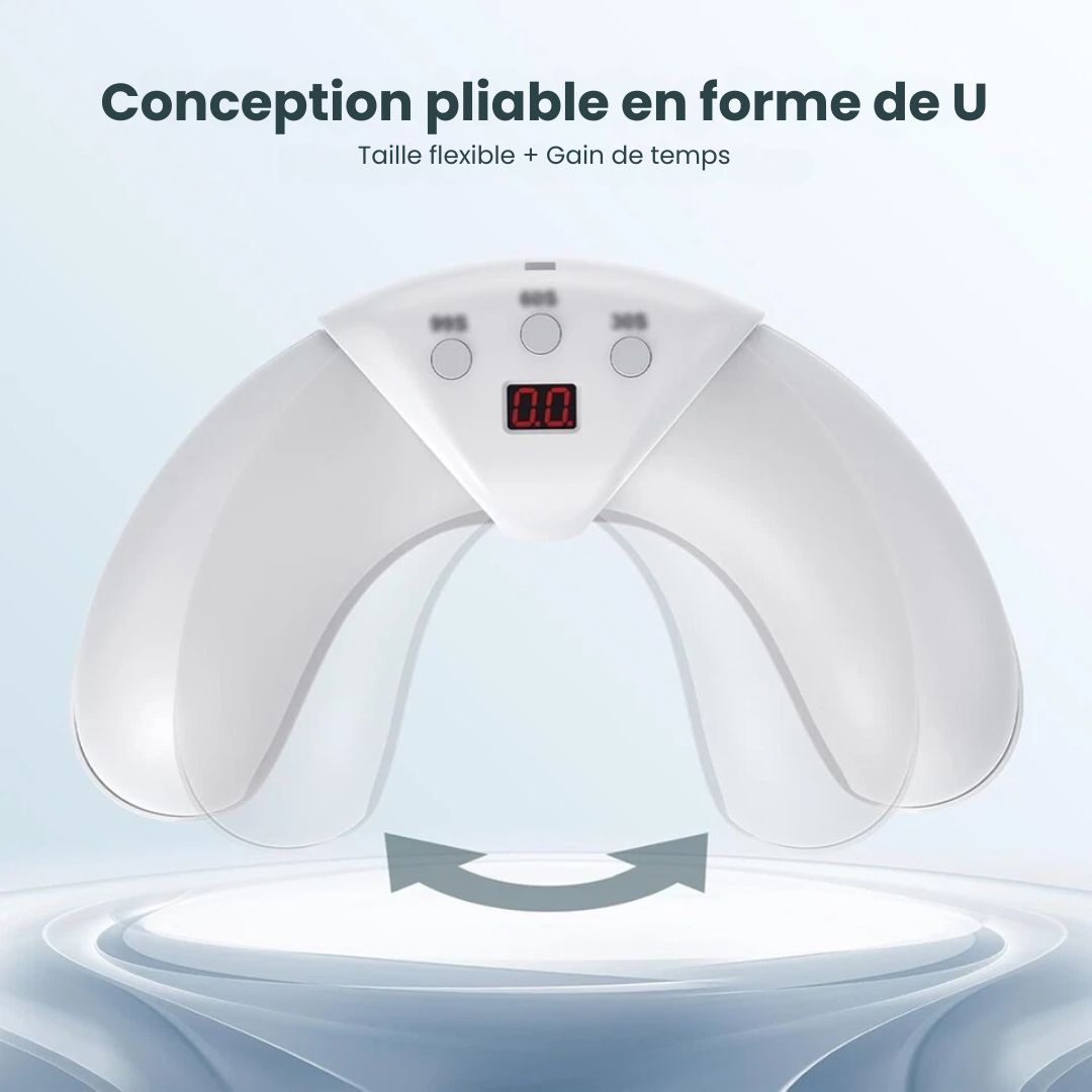Cela permet de gagner du temps et garantit une exposition lumineuse uniforme, sans avoir à traiter chaque ongle séparément.